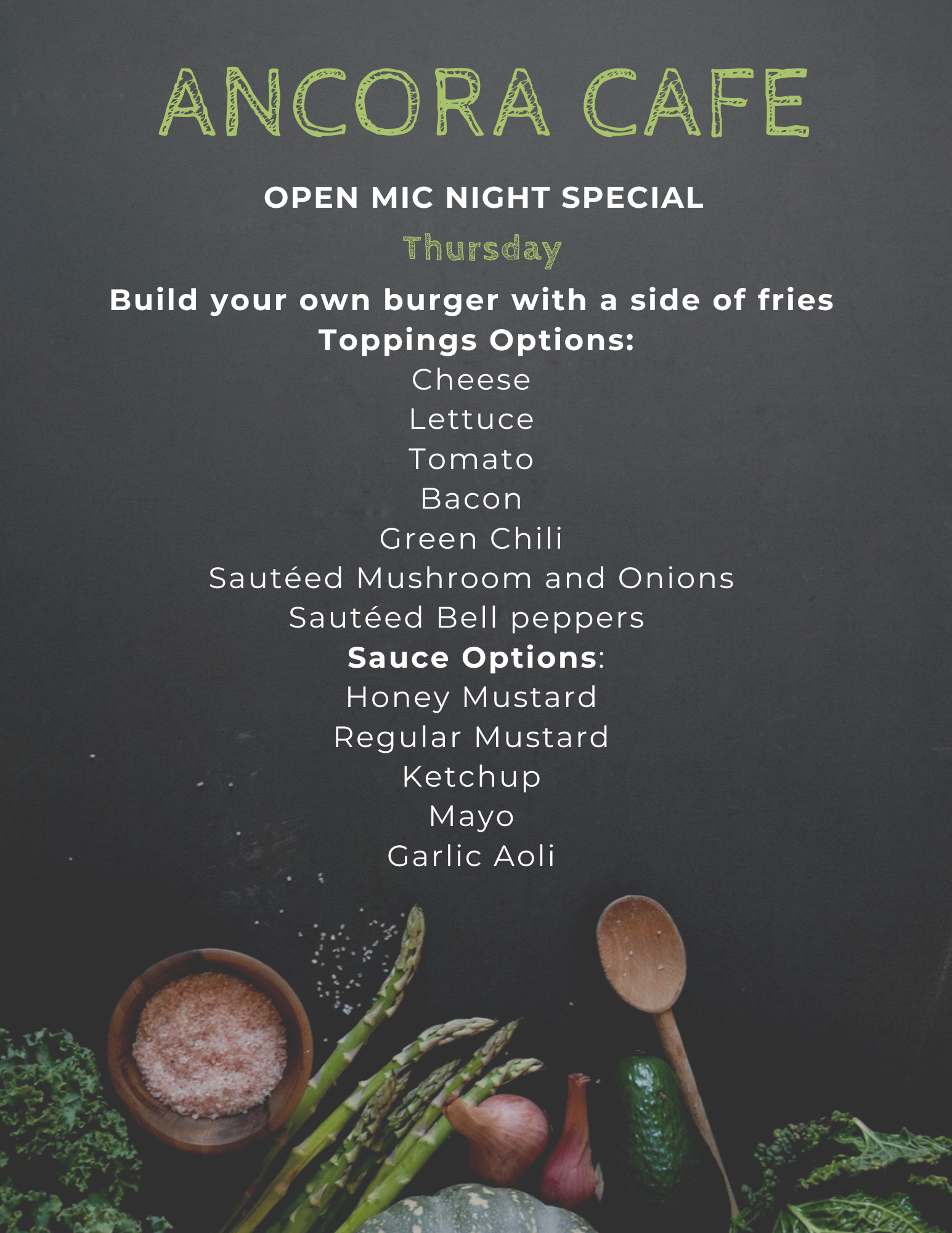 Lunch & dinner Items served 11am-close